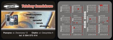 kalendarzykowe, katry firmowe, karty rabatowe,